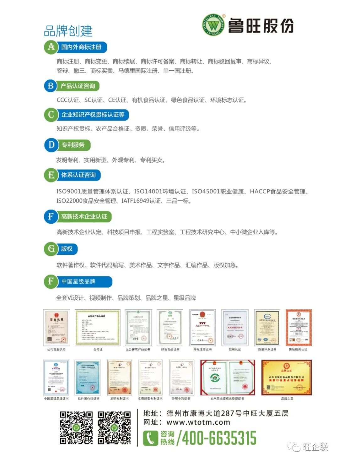 公司名称:山东鲁旺知识产权股份有限公司 网址:www.wtotm.com 全国咨询电话:400-6635-315 地址:德州开发区康博大道287号中旺大厦5楼
