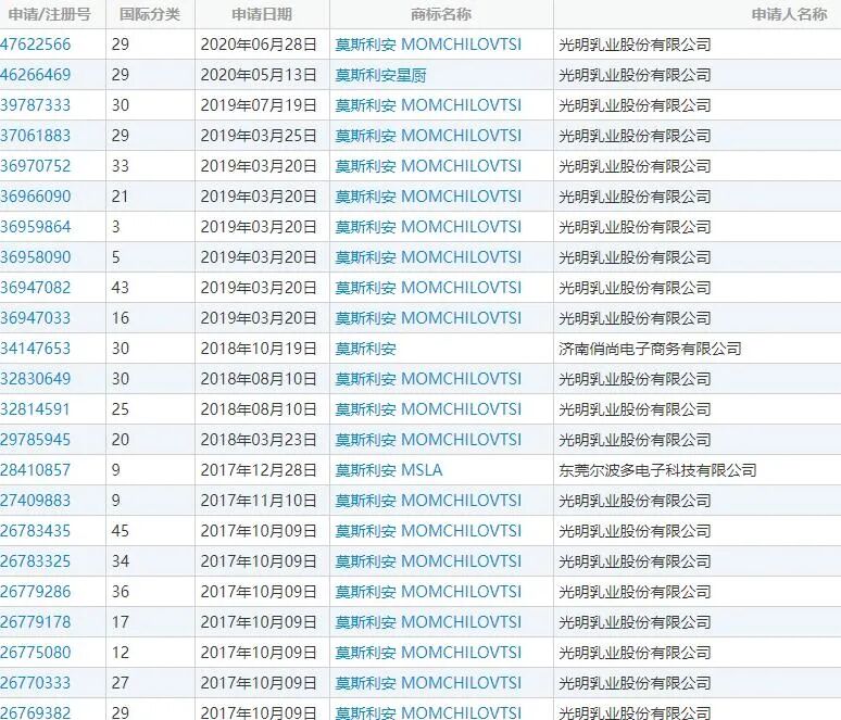 不过,光明乳业在2015年才开始注册第30类“莫斯利安”商标,这就导致了光明乳业在30类等商品上的商标纷争。2018年8月,斯利安药业对光明乳业下的第30类商标提出了无效宣告请求。斯利安药业表示:光明乳业的30类“莫斯利安”商标与该公司的第7316016“斯利安”商标、第15552333号“斯利安SCRIANEN”商标、第891305“斯利安SCRIANEN”等5件商标构成类似商品上的近似商标。